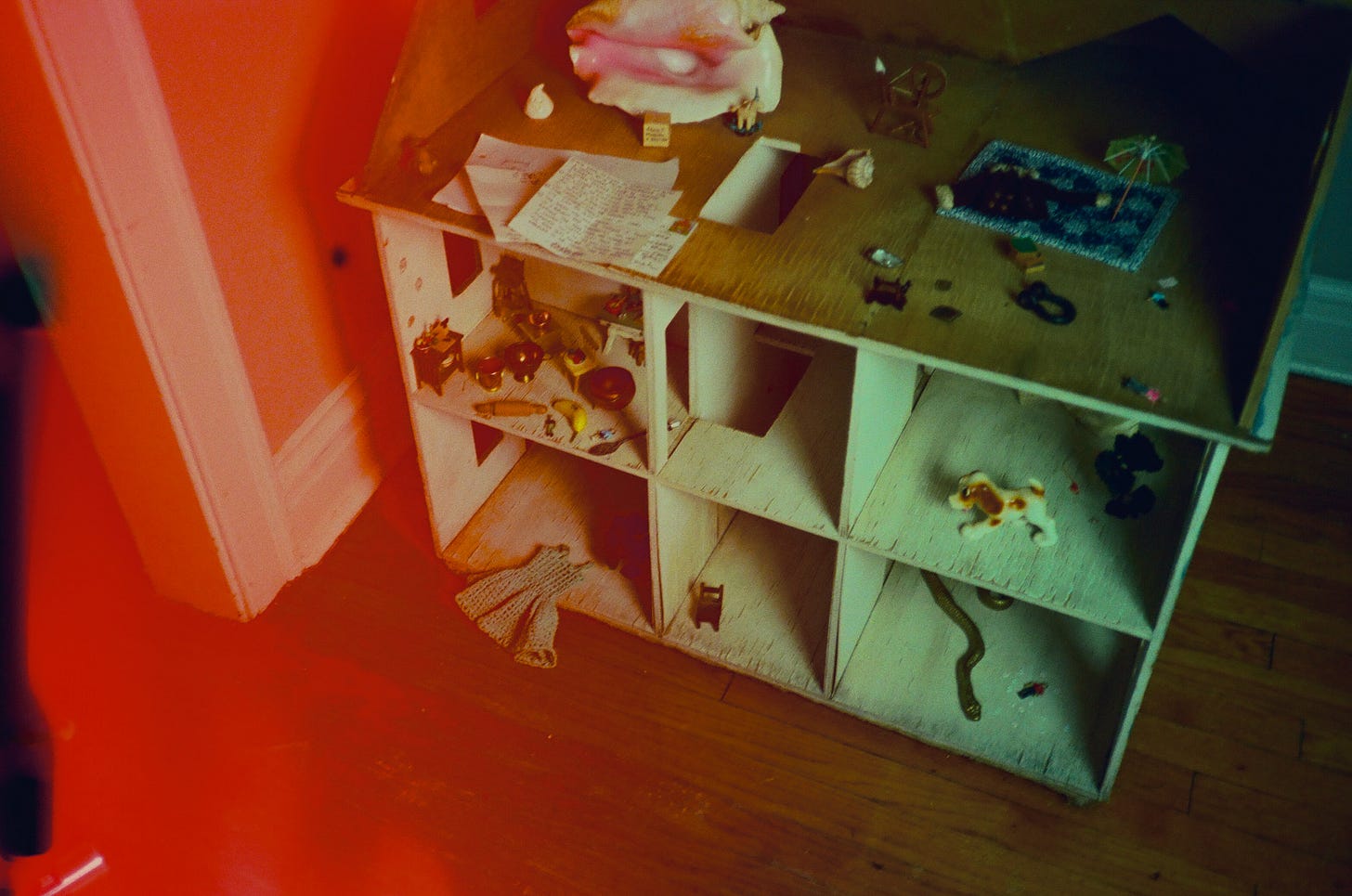 This month I bought a bag of photo negatives at an thrift store. One of the first frames I scanned was of a girl sitting in front of a dollhouse and a Christmas tree with tinsel hanging from it’s branches. Another frame centers two toy horses on a sepia lawn with laundry hanging from a line in the background. I scan, edit, and archive them in files on my google drive, with no real purpose other than salvaging a lost memory.