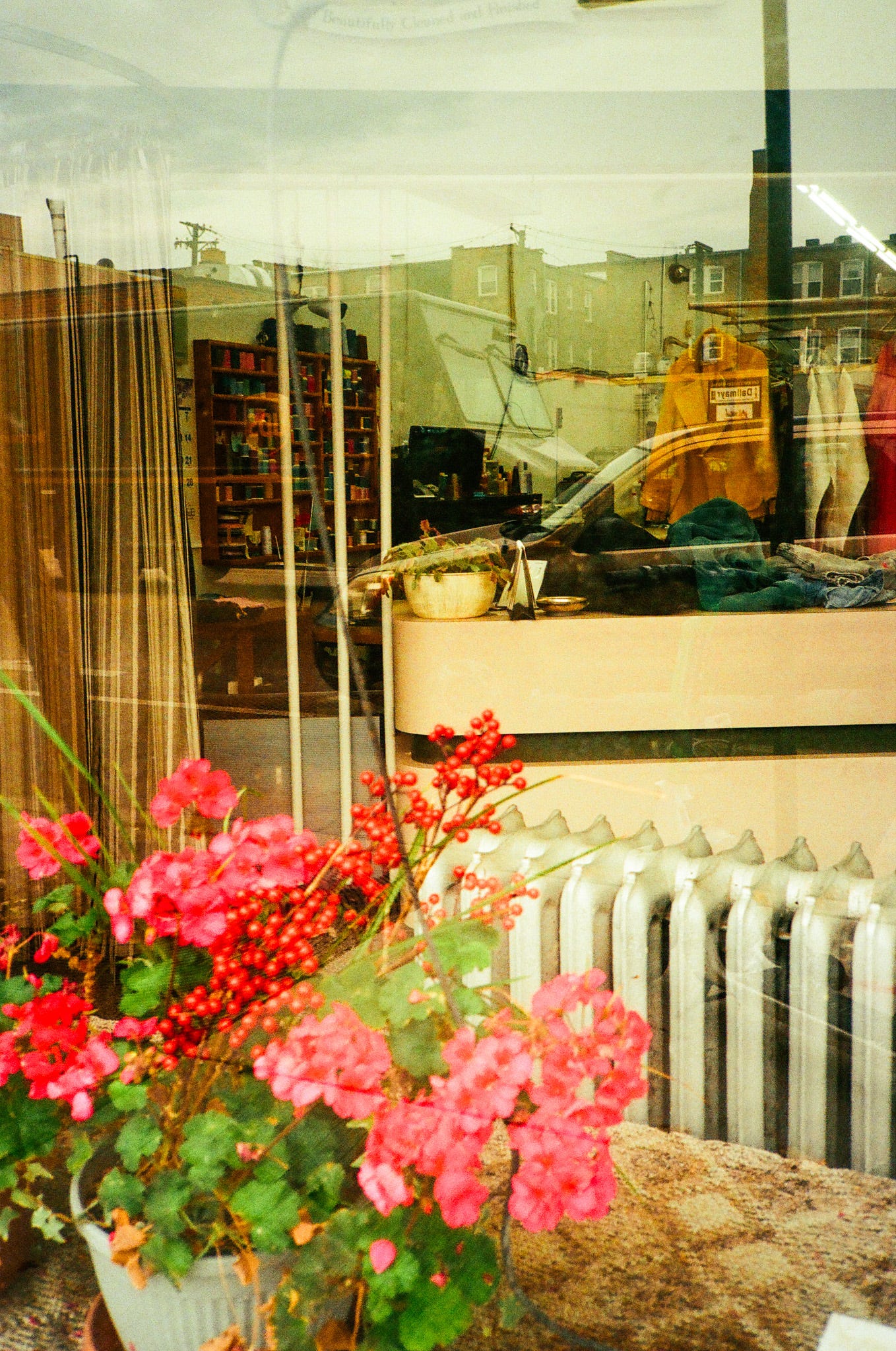I’ve also been taking a lot of photos of windows. I love the way outer worlds merge with inner worlds in the reflections on the glass. I develop the photos, scan them in and decide which elements to amplify and push back in Lightroom.